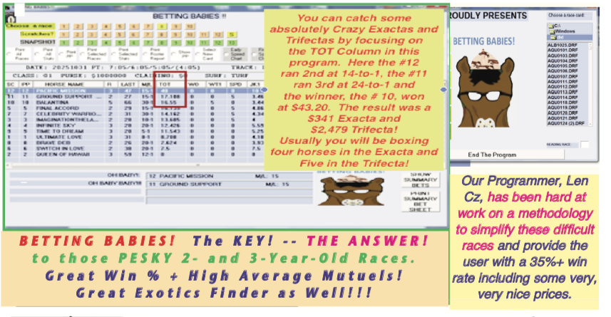 .…will also Solve the Age Old Handicapping dilemma of how to Successfully Handle Younger Horses —