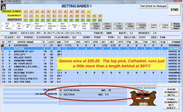 So what Len has done here is create a Software Program that does an excellent job of sorting out some of the most difficult to handicap races on any given racecard.
