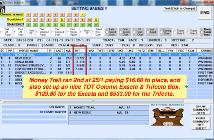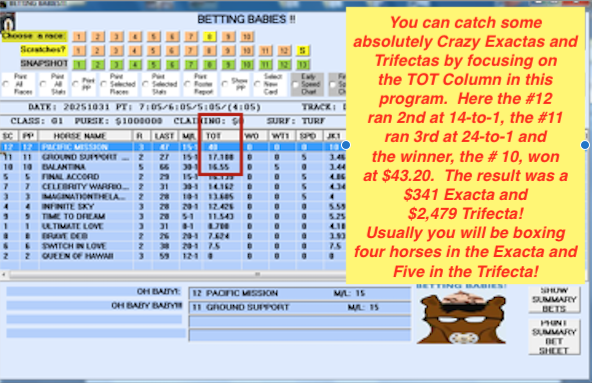 A GREAT EXACTA & TRIFECTA TOOL AS WELL!