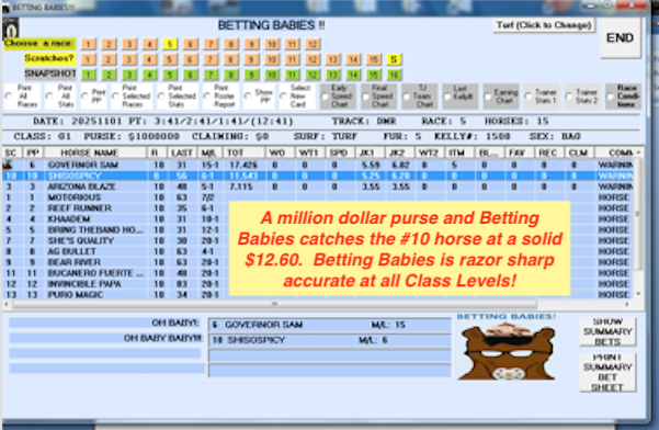Below is the final race on the second Breeders’ Cup day at Del Mar and, as you will note, the program selected two 3 year olds.