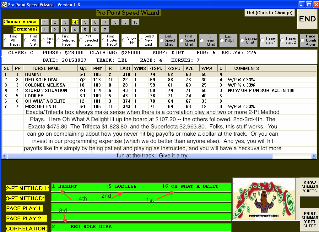 BOOM! This is what you get when you use a quality software program — no handicapper in the world would have come up with this one! Pro Point Wizard did!