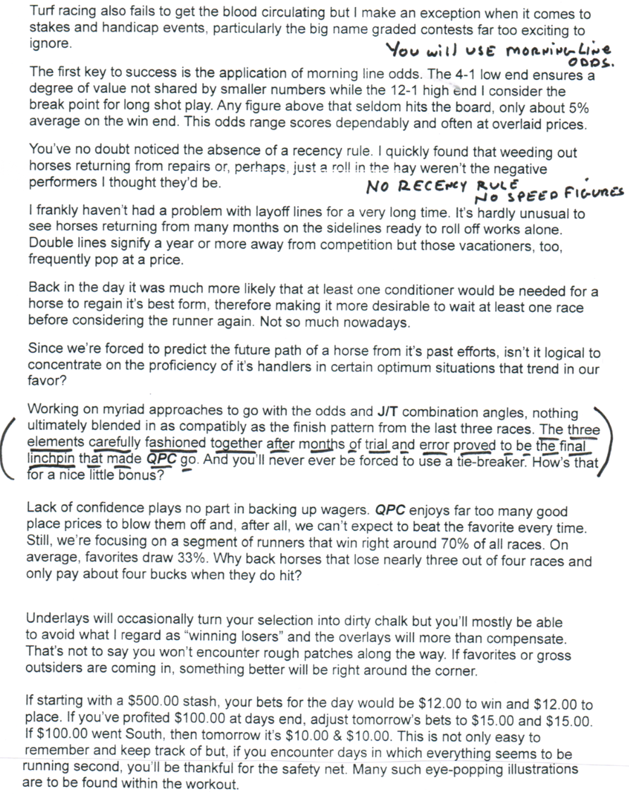 with the morning line odds), you, too, will be beating the races out of the frame. That’s not an exaggeration – it’s a database-researched fact.