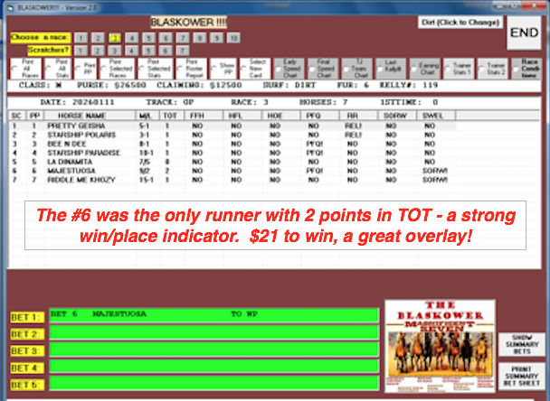 Well, all we can say is that this one does, and if you are just a weekend player, a track regular, a handicapping contest player, whatever, you will want to get a piece of this action.