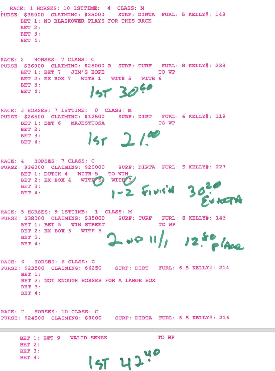 And geez, folks, they just keep on coming! $30.80 to place on a PFQ horse (Garden Princess, below)!
